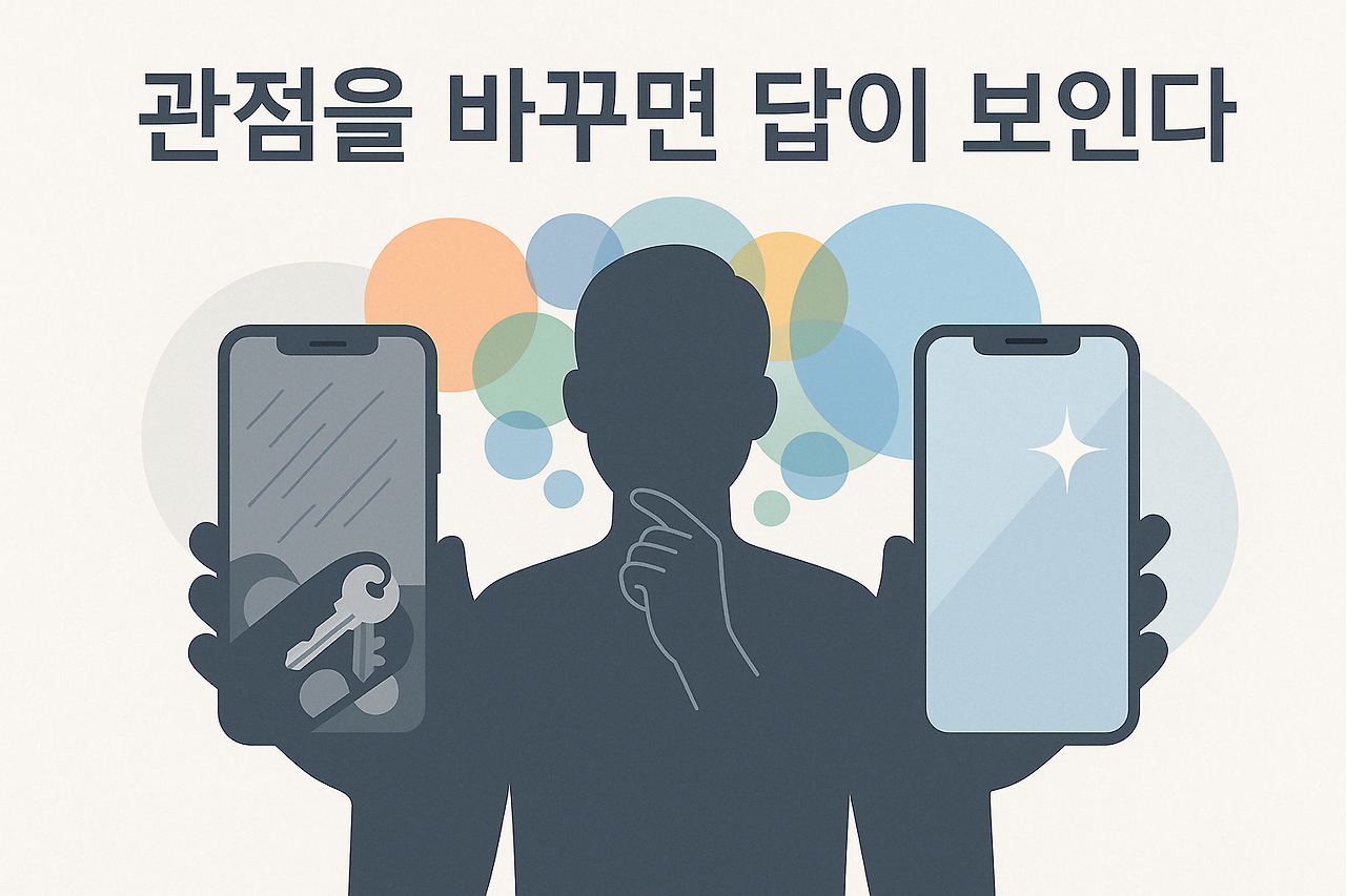 탁월한 아이디어는 종종 ‘직선’으로 오지 않는다. 잠시 명함의 역할을 벗고 문제 주위를 돌아볼 때, 숨은 실루엣이 드러난다. 다음 회의가 정체되는 순간, 이렇게 물어보자. “여기에 없는 시선은 누구 것일까?” 그 시선을 추가하는 순간, 방 안의 생각 회로가 한 단계 넓어질 것이다.