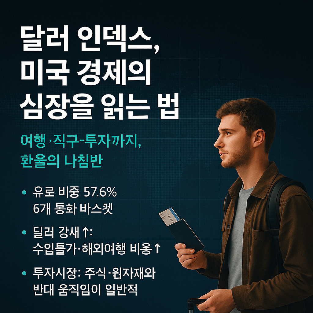 혹시 최근 해외여행이나 직구 쇼핑을 계획하셨나요? 분명 작년 이맘때보다 비싸진 경비와 물건값에 깜짝 놀라셨을 겁니다. "달러가 너무 강세"라는 뉴스 헤드라인을 보긴 했지만, 이것이 내 지갑과 무슨 상관인지 헷갈리셨다면 오늘 이야기가 바로 당신을 위한 것입니다. 달러 인덱스는 환율, 주식, 물가 등 우리 삶에 영향을 미치는 거대한 지표입니다. 이 지표의 의미를 파악하는 것은 글로벌 경제의 복잡한 움직임을 이해하는 첫걸음이자, 현명한 소비와 투자를 위한 필수적인 지식이 됩니다.