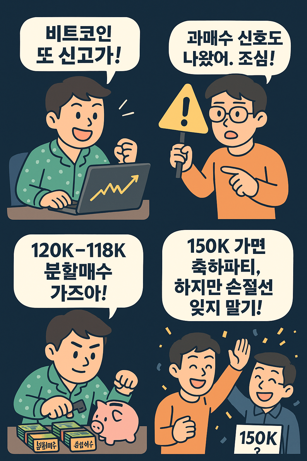 4컷 ― “150K 넘으면 축하파티, 하지만 손절선 잊지 말기!”