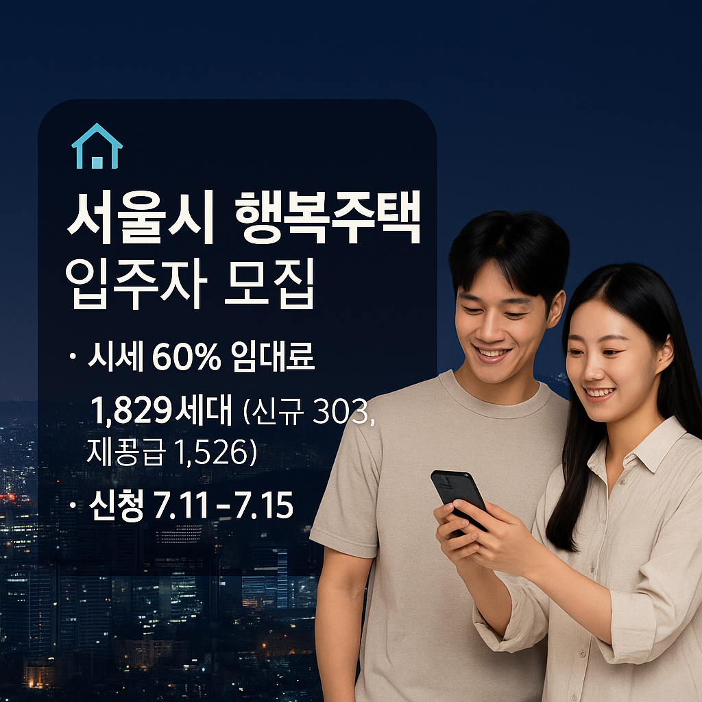 2025년 서울시 행복주택 입주자 모집이 시작됩니다! 총 1,829호 공급. 청년, 신혼부부, 고령자 등 자격 요건과 신청 기간, 방법을 총정리하여 내 집 마련의 꿈을 도와드립니다.