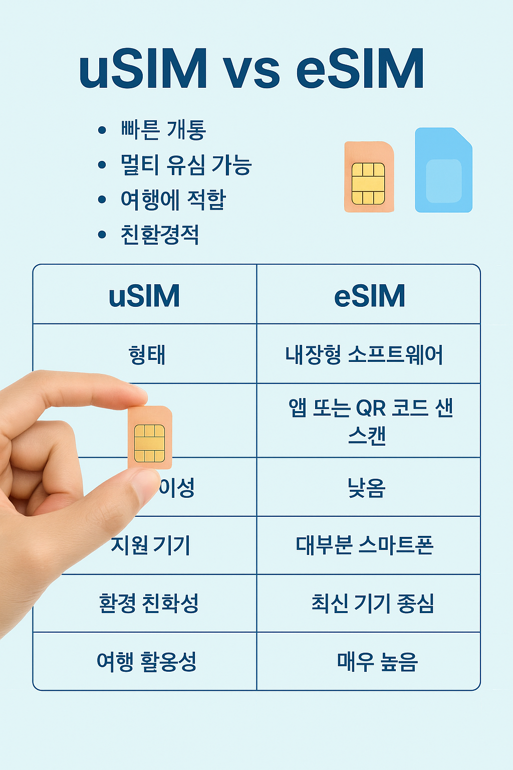 유심(USIM)과 이심(eSIM)의 장단점 비교