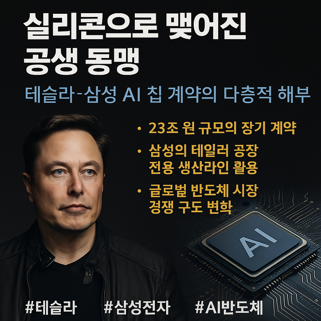 최근 발표된 테슬라와 삼성전자 간의 차세대 인공지능(AI) 칩 계약은 단순한 부품 공급 거래를 훨씬 뛰어넘는 전략적 의미를 내포한다. 약 23조 원에 달하는 이 빅딜은 기술적 야망, 지정학적 필연성, 그리고 상호 신뢰 회복이라는 복합적인 목표가 맞물려 탄생한 중대한 산업 지형의 재편이다. 이 파트너십은 양사 모두에게 결정적인 '윈-윈(Win-win)' 전략으로 평가되며, 향후 10년간 글로벌 반도체 및 AI 산업의 경쟁 구도를 근본적으로 바꿀 변곡점이 될 잠재력을 지니고 있다.