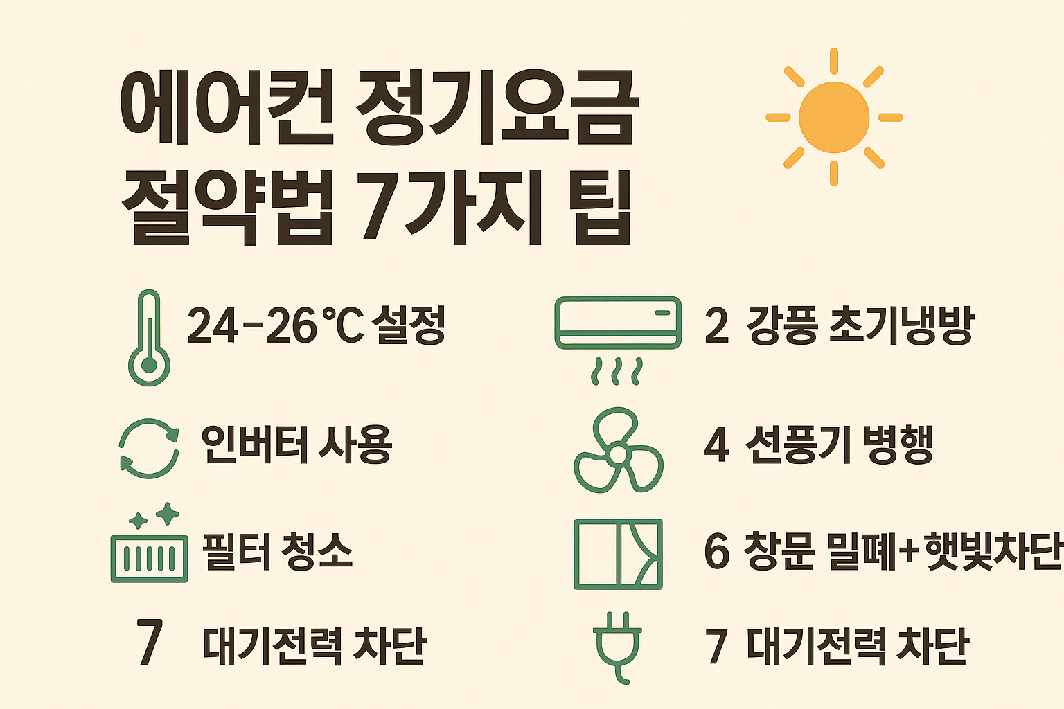 무더운 여름, 에어컨 전기요금(전기세) 때문에 걱정이신가요? 에어컨은 여름철 필수 가전이지만 잘못 사용하면 전기요금 폭탄을 맞을 수도 있습니다. 하지만 몇 가지 간단한 여름 전기요금 절약 팁만 알아두면 시원함은 그대로 유지하면서도 전기요금을 크게 줄일 수 있어요. 지금부터 에어컨 전기요금 절약을 위한 실천 가능한 꿀팁들을 하나씩 살펴보겠습니다!