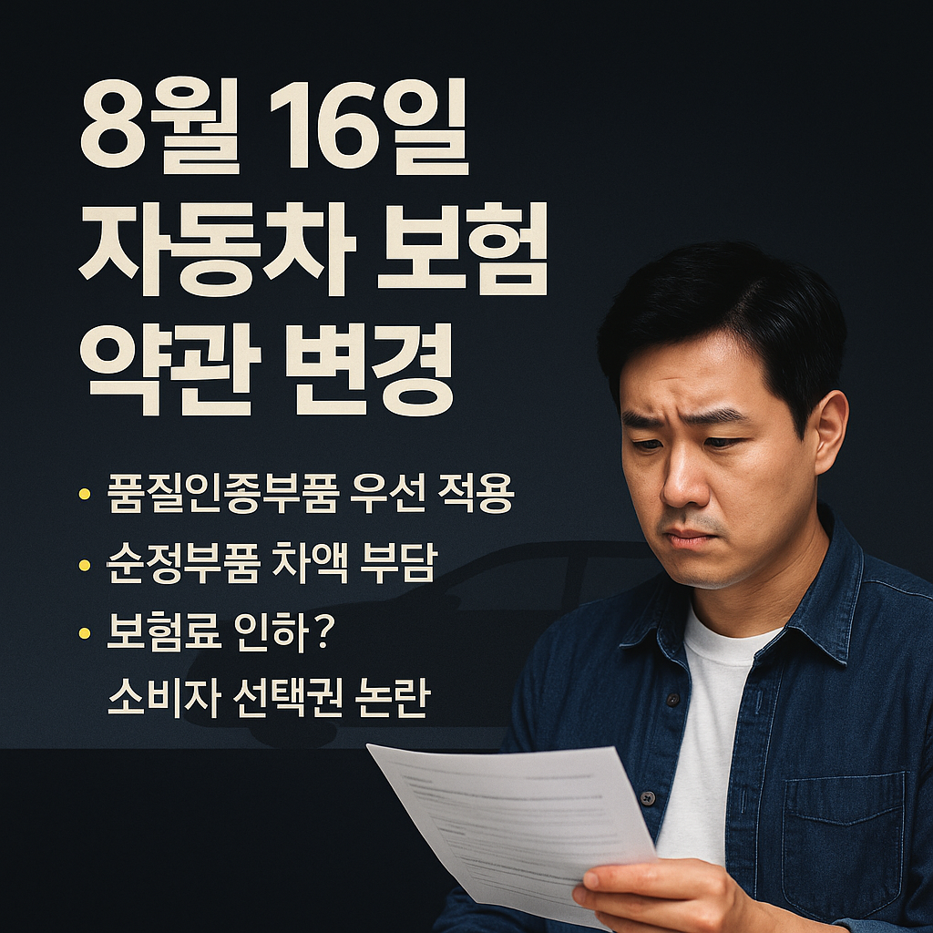 정부와 금융감독원은 이를 ‘고비용 수리 관행 개선’이라 설명하지만, 소비자 입장에서는 보상받을 권리가 축소된 것처럼 느껴질 수밖에 없습니다. 과거에는 품질인증부품 사용 시 ‘보상’을 주며 선택을 유도했다면, 이제는 정품 부품 사용 시 ‘벌칙’을 부과하며 사실상 사용을 강제하는 구조로 바뀐 것입니다.