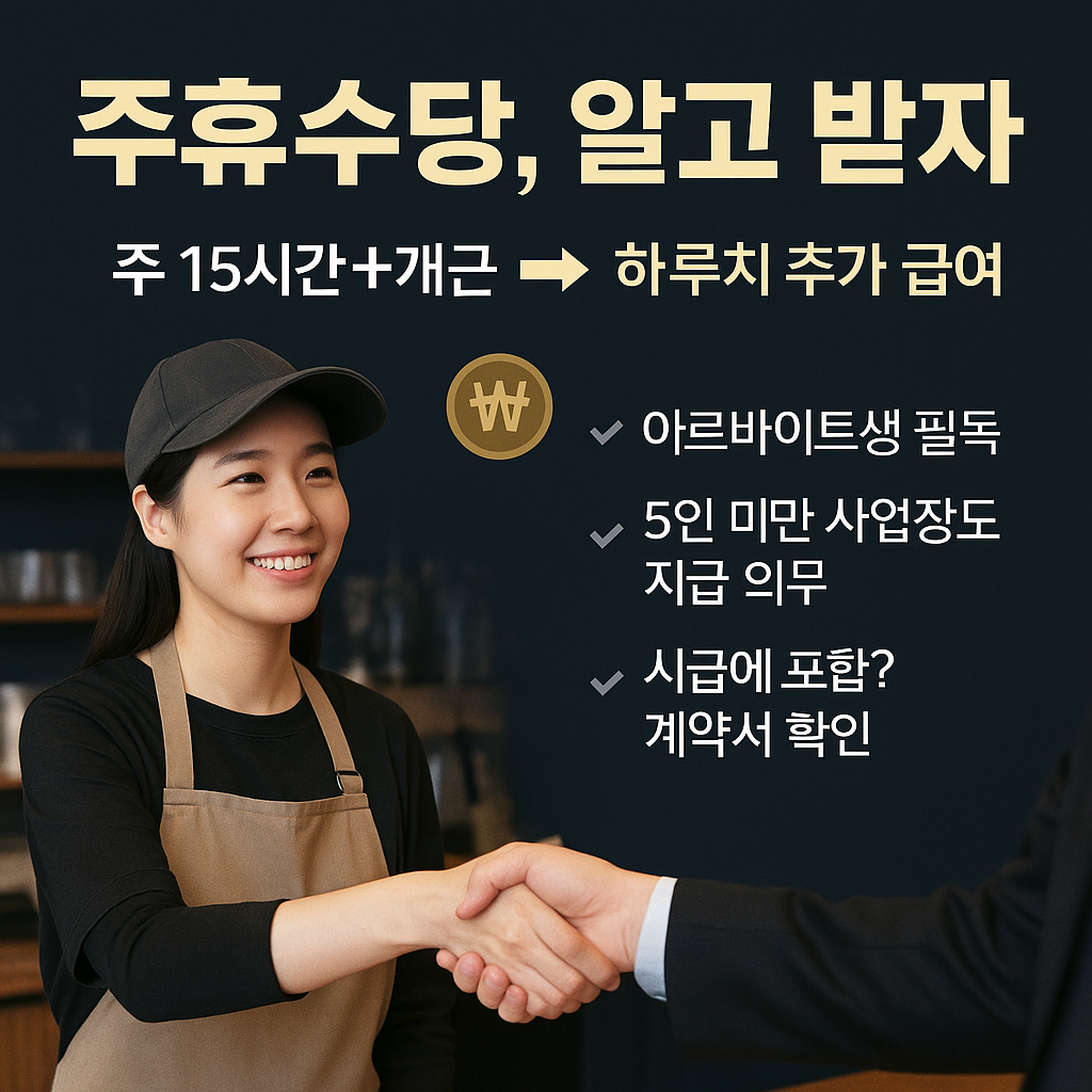 아르바이트생도 주휴수당 받을 수 있을까요? 주 15시간 이상 일했다면 당신도 대상! 헷갈리는 주휴수당 조건, 계산법, 미지급 신고 방법까지 이 글 하나로 완벽하게 정리해 드립니다.