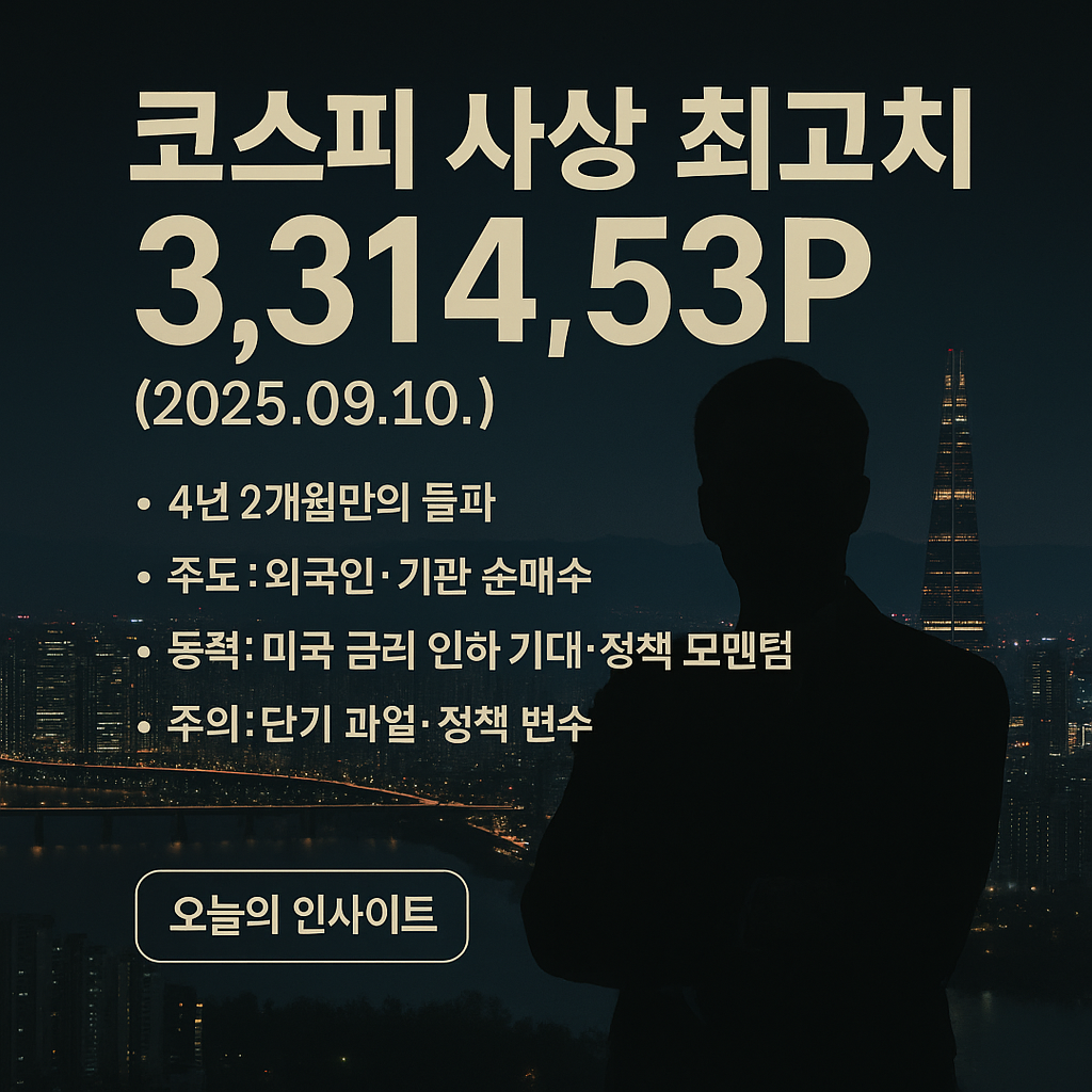2025년 9월 10일, 코스피 지수가 3,314.53포인트로 마감하며 새로운 최고점을 기록했습니다. 이는 2021년 7월의 이전 최고점 3,305.21포인트를 넘어선 역사적인 사건입니다. 42년간 이어져 온 코스피의 여정을 돌아보면, 이번 상승은 단순한 시장의 활기를 넘어선 특별한 의미를 가집니다.