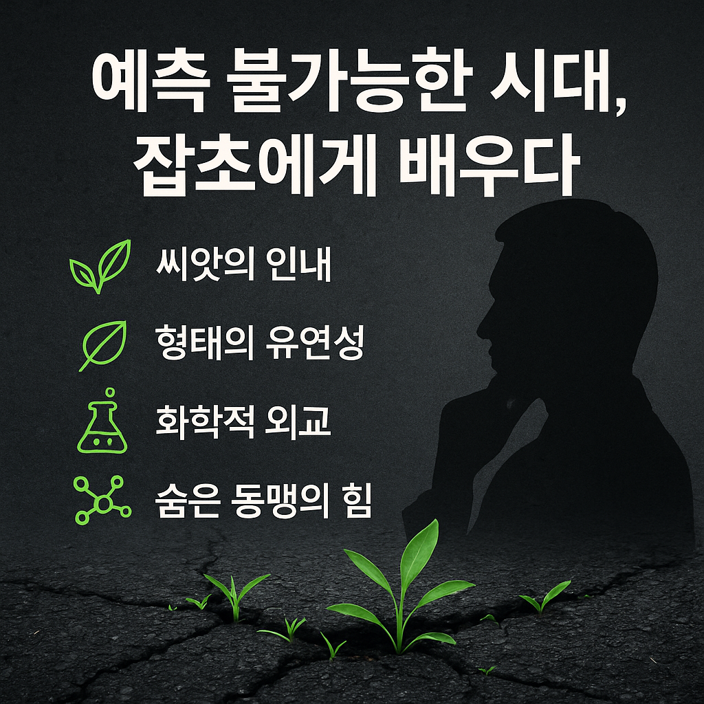 우리가 감탄해 마지않던 '잡초 같은 끈기'는 실재하지만, 이제 우리는 그 근원을 다르게 이해한다. 그것은 맹목적인 고집이 아니라, 씨앗의 인내, 형태의 유연성, 화학적 외교의 기민함, 그리고 숨겨진 동맹의 힘이라는 다층적이고 명민한 전략에서 비롯된 것이다.