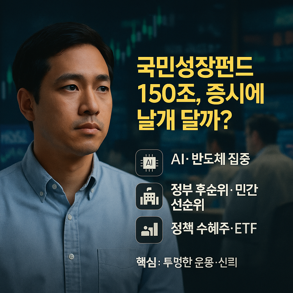 한국 경제의 미래를 바꿀 150조 국민성장펀드! 과연 첨단전략산업에 활력을 불어넣고 '한국형 엔비디아'를 탄생시켜 증시의 새로운 성장 동력이 될 수 있을까요? 핵심 키워드와 함께 궁금증을 풀어봅니다.