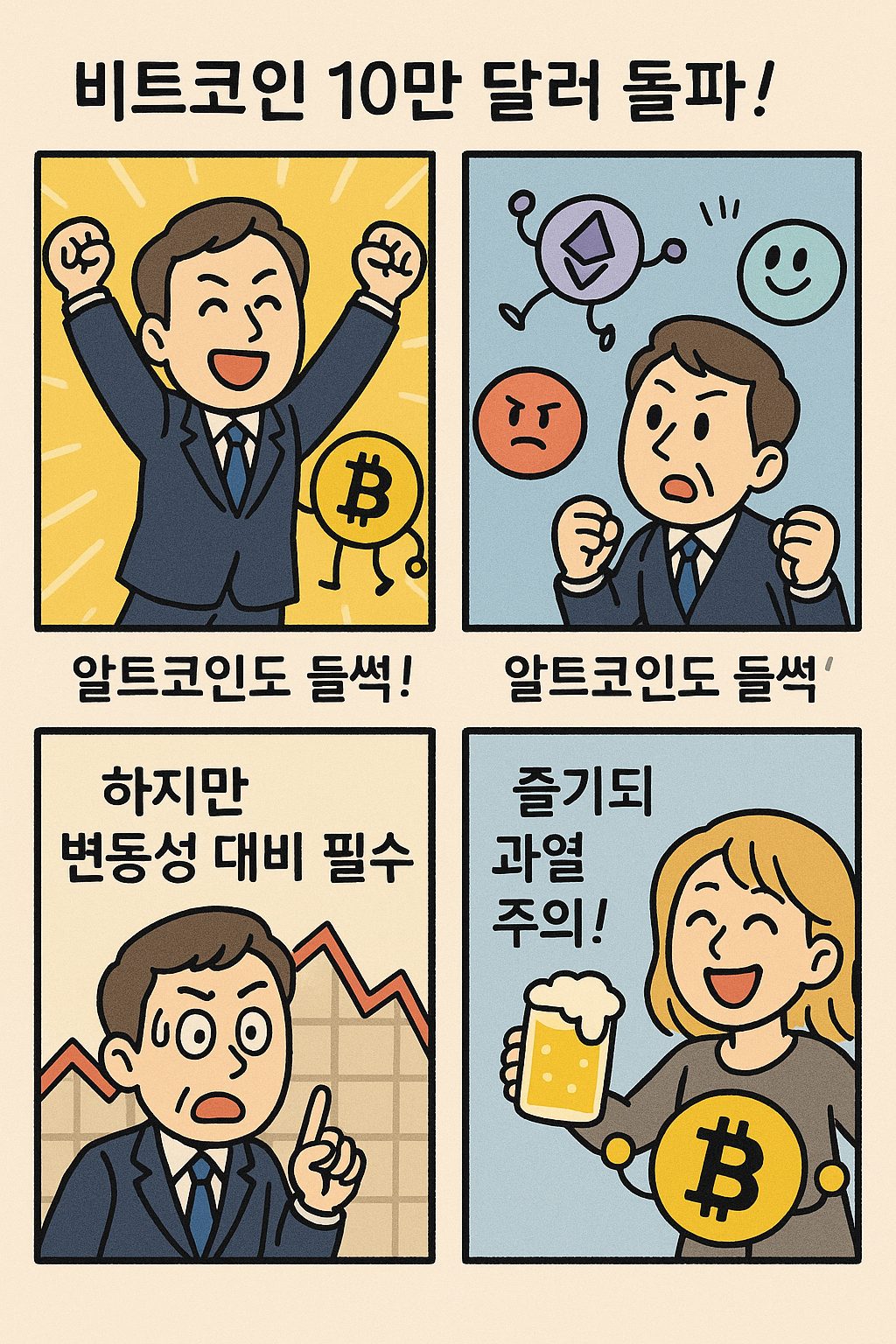 | 비트코인 10만 달러 재돌파! 투자자 감정 롤러코스터 4컷 만화 (0) | 2025.05.10 |
