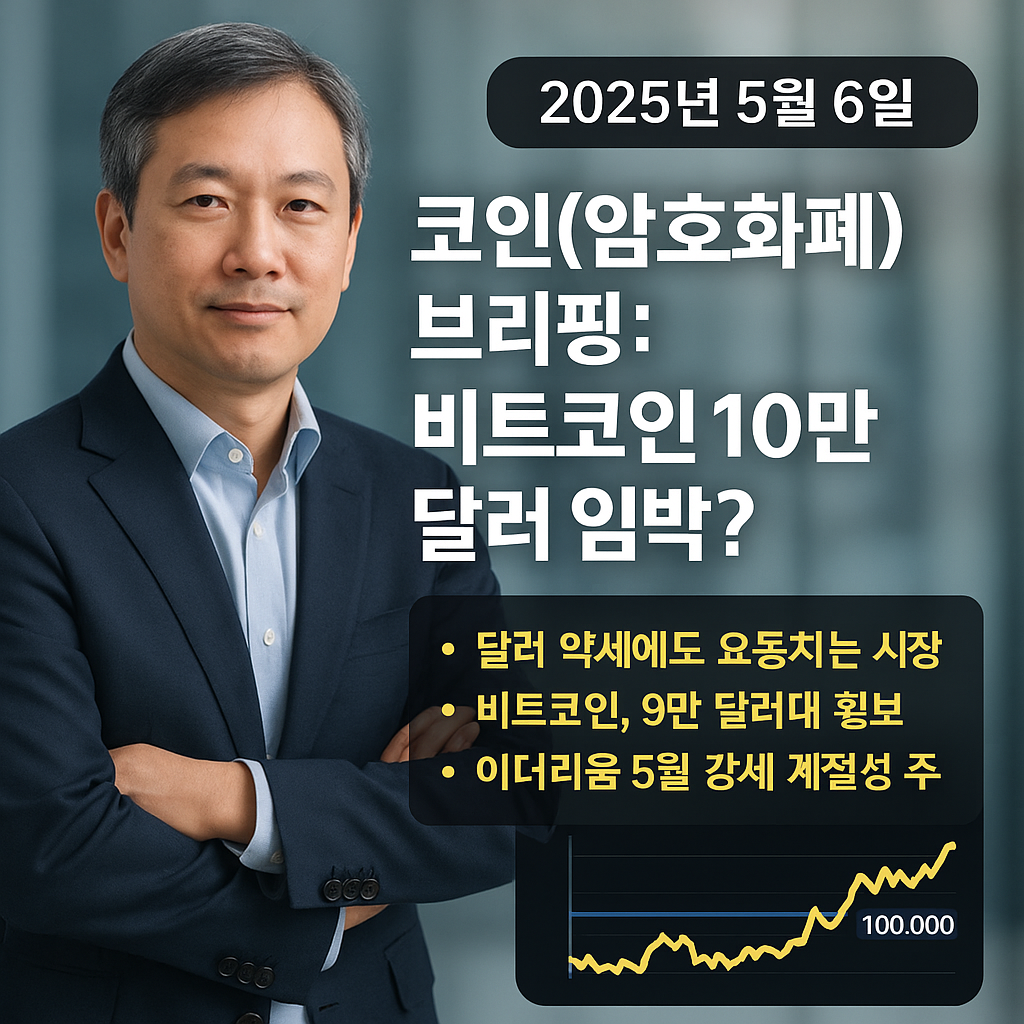 2025년 5월 5일, 6일 코인(암호화폐) 브리핑: 비트코인 10만 달러 고지 눈앞! 어디까지 상승할까?