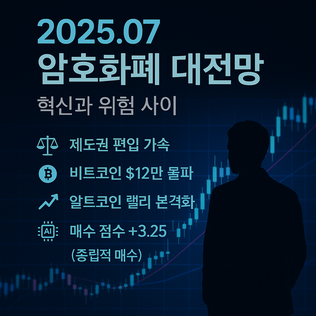2025년 7월, 우리는 암호화폐 시장의 역사적 변곡점을 목격하고 있습니다. 규제의 틀이 잡히고 기관의 신뢰를 얻으면서, 암호화폐는 더 이상 변방의 자산이 아닌 주류 금융 시장의 당당한 일원으로 자리매김하고 있습니다. 눈앞에 펼쳐진 기회는 분명 거대하지만, 그 이면에는 단기 과열과 변동성이라는 리스크가 공존합니다.