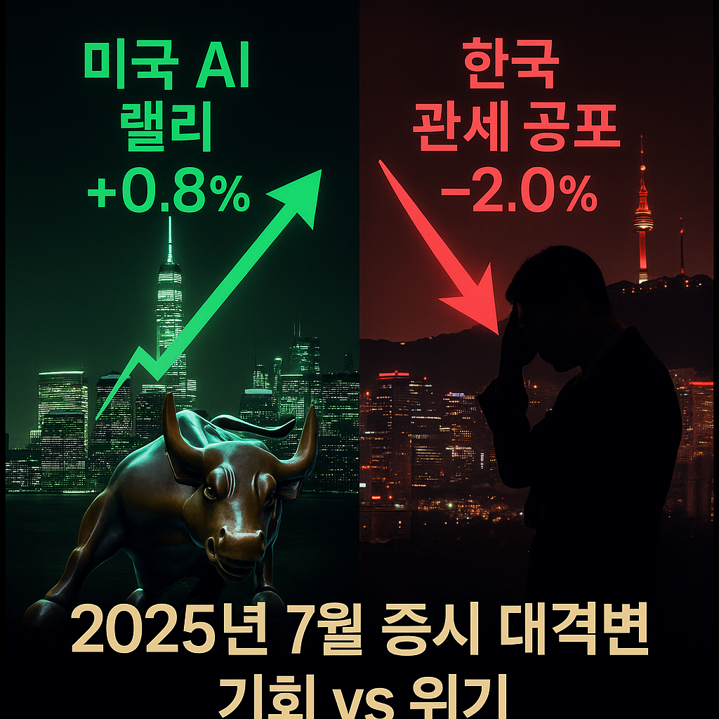 2025년 7월 5일, 글로벌 금융 시장은 투자자들에게 극명한 온도 차를 보여주었습니다. 한쪽에서는 인공지능(AI) 열풍과 견고한 경제 지표를 바탕으로 축포를 쏘아 올린 반면, 다른 한쪽에서는 무역 전쟁의 공포가 짙게 드리우며 냉각기에 접어들었습니다. 본 포스트에서는 제공된 최신 데이터를 바탕으로 현재 시장을 입체적으로 분석하고, 향후 시장의 향방과 투자자들이 주목해야 할 핵심 포인트를 심도 있게 다루겠습니다.