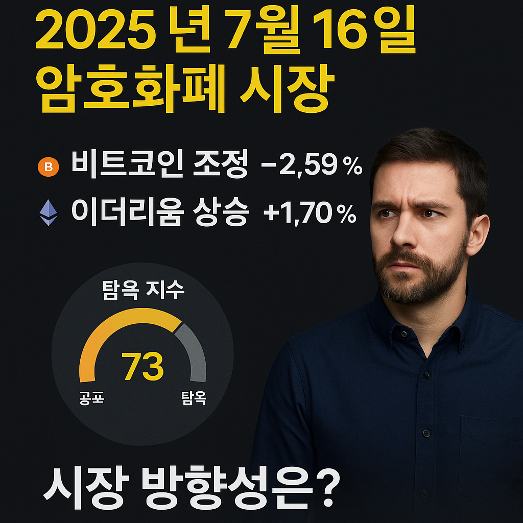 2025년 7월 16일, 아시아 시장이 문을 여는 새벽 6시, 암호화폐 시장은 매우 흥미롭고 복합적인 분기점에 서 있습니다. 시장의 대장주인 비트코인(BTC)이 뚜렷한 조정 국면에 진입한 반면, 2인자인 이더리움(ETH)은 놀라운 회복탄력성을 보이며 홀로 상승하는 이례적인 모습을 연출하고 있습니다. 이러한 엇갈린 흐름은 현재 시장이 얼마나 복잡한 힘의 균형 위에 서 있는지를 명확히 보여줍니다.